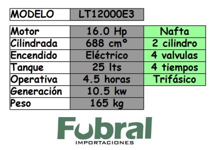 Generador TRIFASICO 380V. MONO 220V – LT12000E3 – 10.5 KW